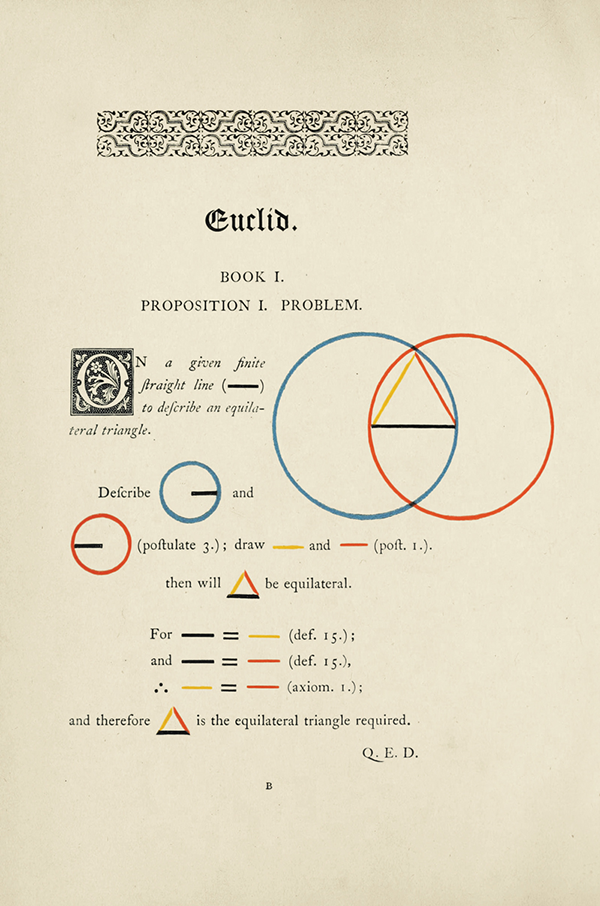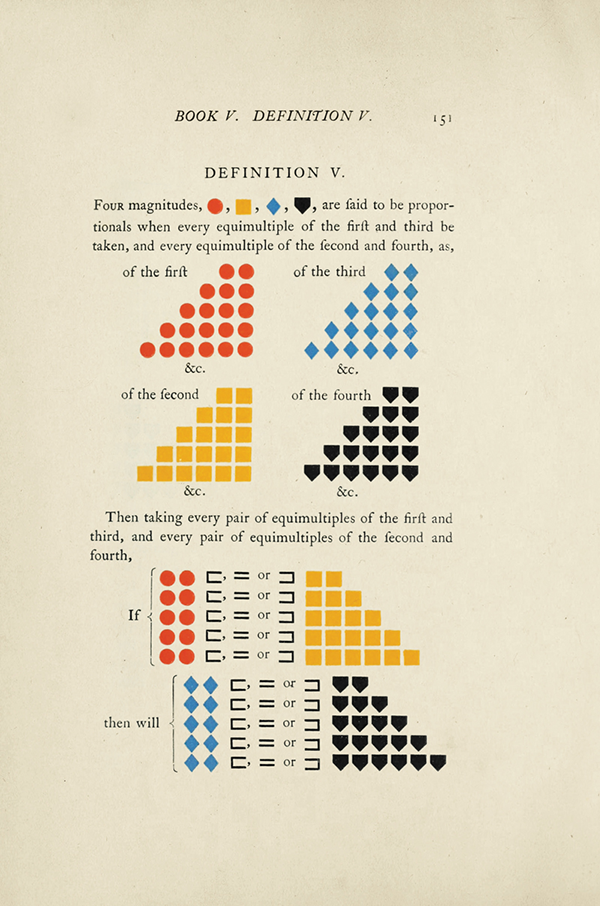 Despite being printed over a century ago, Oliver Byrne’s stunning edition of Euclid’s Elements continues to be one of the most beautiful expositions in the world of mathematical publishing.